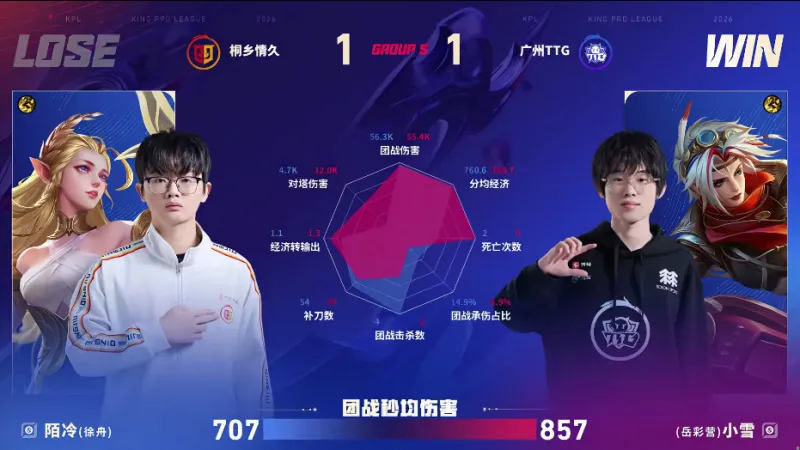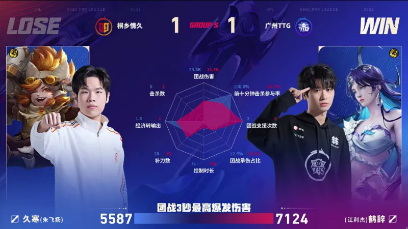 虎扑02月06日讯 TTG/情久第二局数据图:佳心阿古朵团战伤害五万多